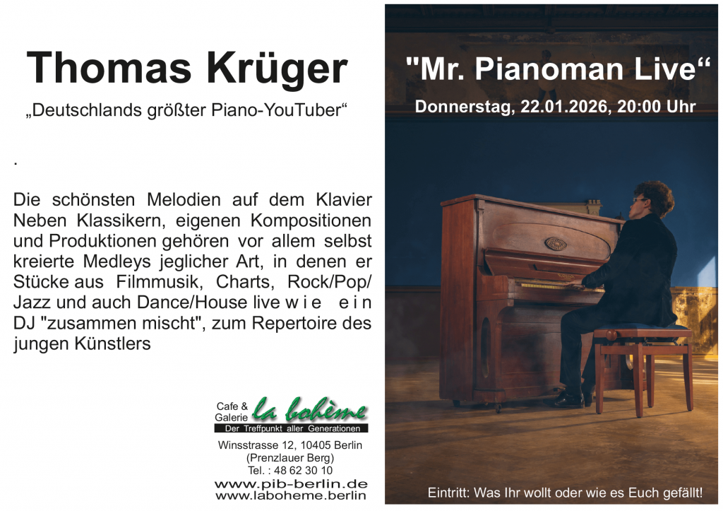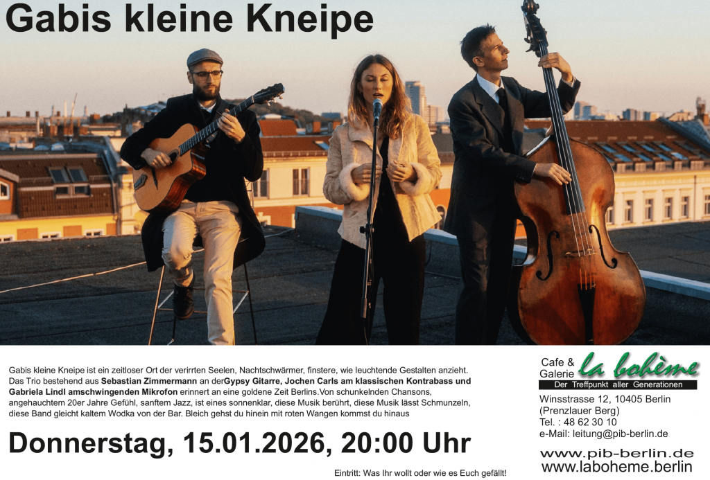Im La Bohème flackert das Leben zwischen Kunst und Begegnung – auf Spendenbasis laden wir ein zu Abenden voller Klang, Poesie und Wärme. Tretet ein, verweilt und lasst Euch von Menschen und Momenten inspirieren.